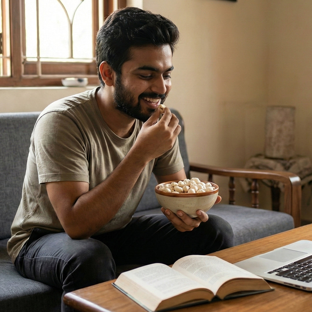 At DNA Dryfruits, our makhana is thoughtfully sourced and carefully processed to deliver unmatched purity, taste, and nutrition. Naturally low in calories and fat, makhana is a light yet filling super-snack that fits perfectly into a balanced, mindful lifestyle. Rich in plant-based protein, calcium, magnesium, and antioxidants, it supports bone strength, digestion, and sustained daily energy.