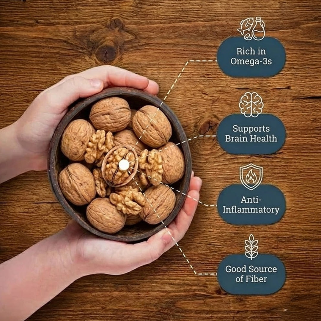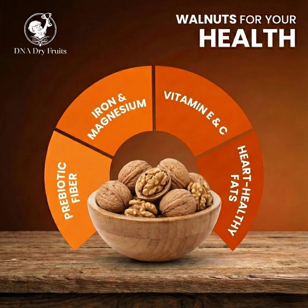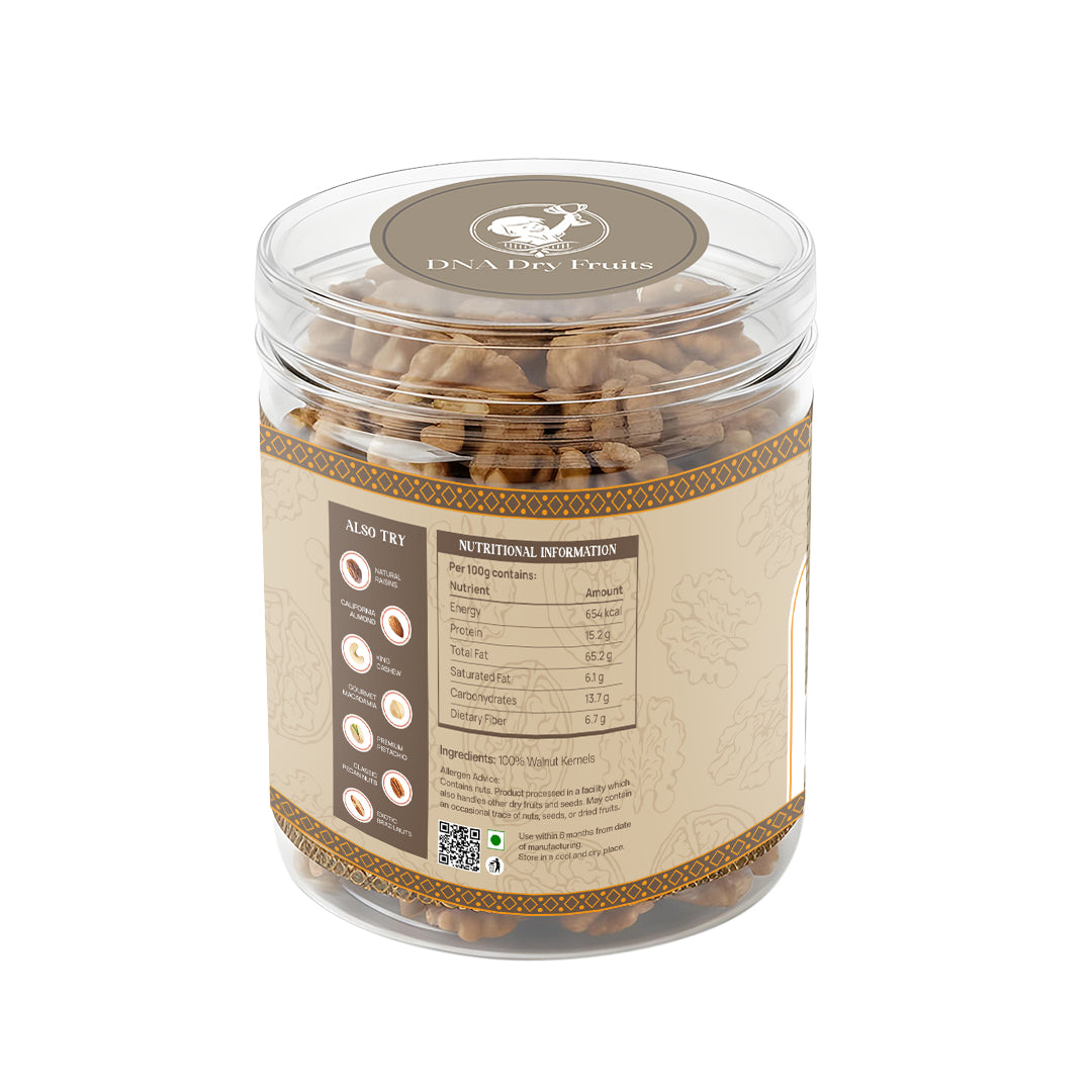 Experience the rich, earthy taste and exceptional quality of DNAdryfruits Supreme Walnut—carefully chosen for their size, freshness, and nutritional benefits. Walnuts are a well-known source of plant-based omega-3 fatty acids, antioxidants, fiber, and essential minerals like copper, manganese, and magnesium, making them a powerhouse for brain, heart, and gut health. Enjoy them as a wholesome snack, sprinkle over salads or desserts, or add to your favorite recipes for a boost of nourishment and crunch. Sealed for lasting freshness, DNAdryfruits Supreme Walnut is the perfect everyday addition to a balanced diet.